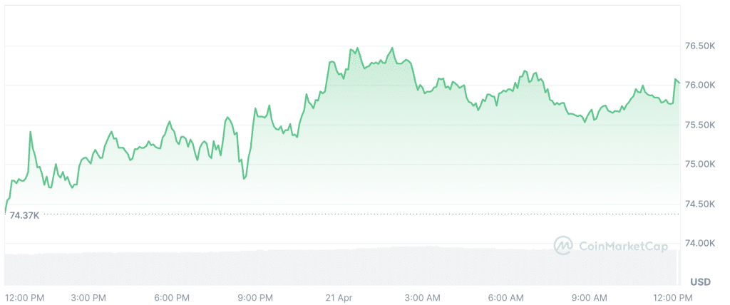The latest batch was acquired at an average price of $74,395 per BTC. Strategy’s overall cost basis is around $75,527, placing its holdings close to breakeven at current market prices. At press time, the king coin was trading at $76,019.39, following a 1.69% rise over the past 24 hours.