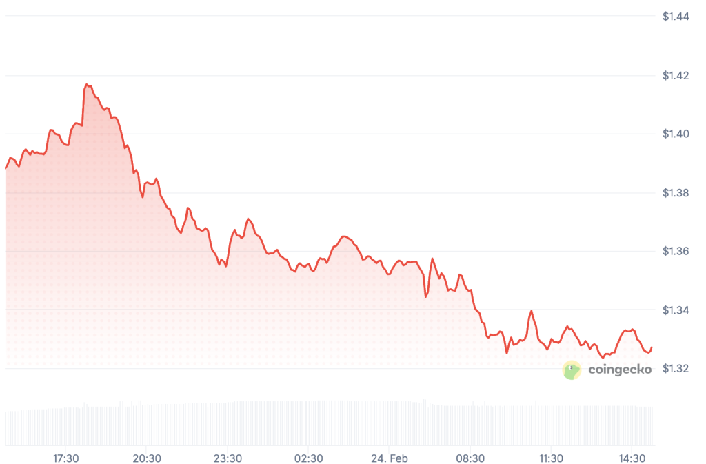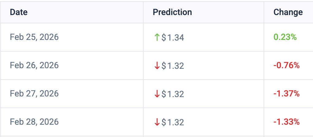 According to data from Coincodex, XRP will most likely end the month of February on a bloody note. The altcoin is expected to dip by 1.37% mid week. During this period, the lowest that XRP will trade at is around $1.32. In addition, the asset could also trade at a high of $1.34 this week.