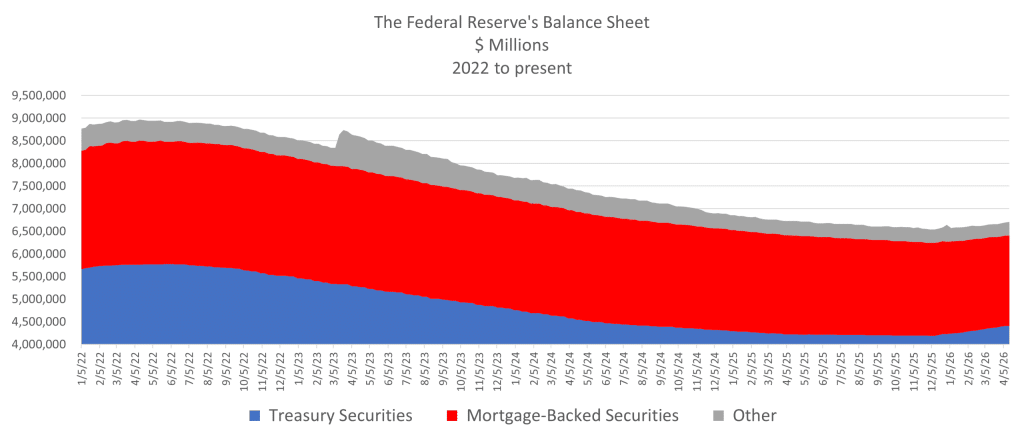 Recent data reflects that change. The Fed’s balance sheet stands at around $6.7 trillion as of April 15, up roughly $12 billion from the previous week, according to the American Action Forum tracker.