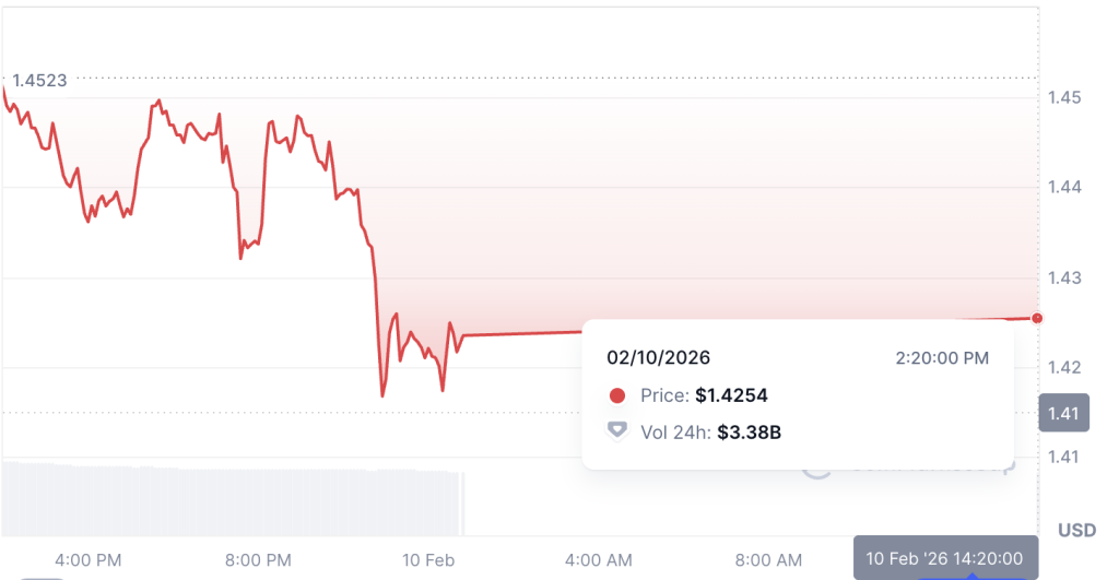 At press time, XRP was trading at $1.42 with a 1.18% rise over the past 24 hours. The asset rose to a high of $1.46 earlier today before slumping to a low of $1.37. Currently, the asset seems to be recovering from this fall.
