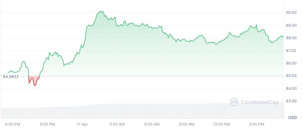 The increase in activity has been gradual and not sudden. It has come even as price movement has stayed relatively muted. Meanwhile, the price of Solana surged by nearly 4% over the past 24 hours. SOL went from trading at a low of $84.20 to a high of $90.38. At press time, the asset was trading at $88.14.