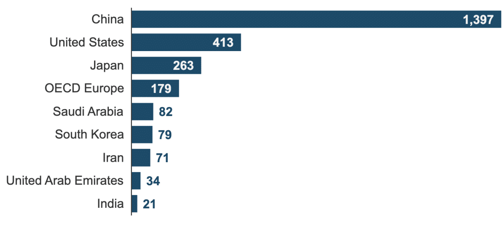 In comparison, the US had about 413 million barrels in its Strategic Petroleum Reserve, Japan held 263 million barrels, and OECD Europe had roughly 179 million barrels. Combined, that comes to around 855 million barrels, well below China’s total.