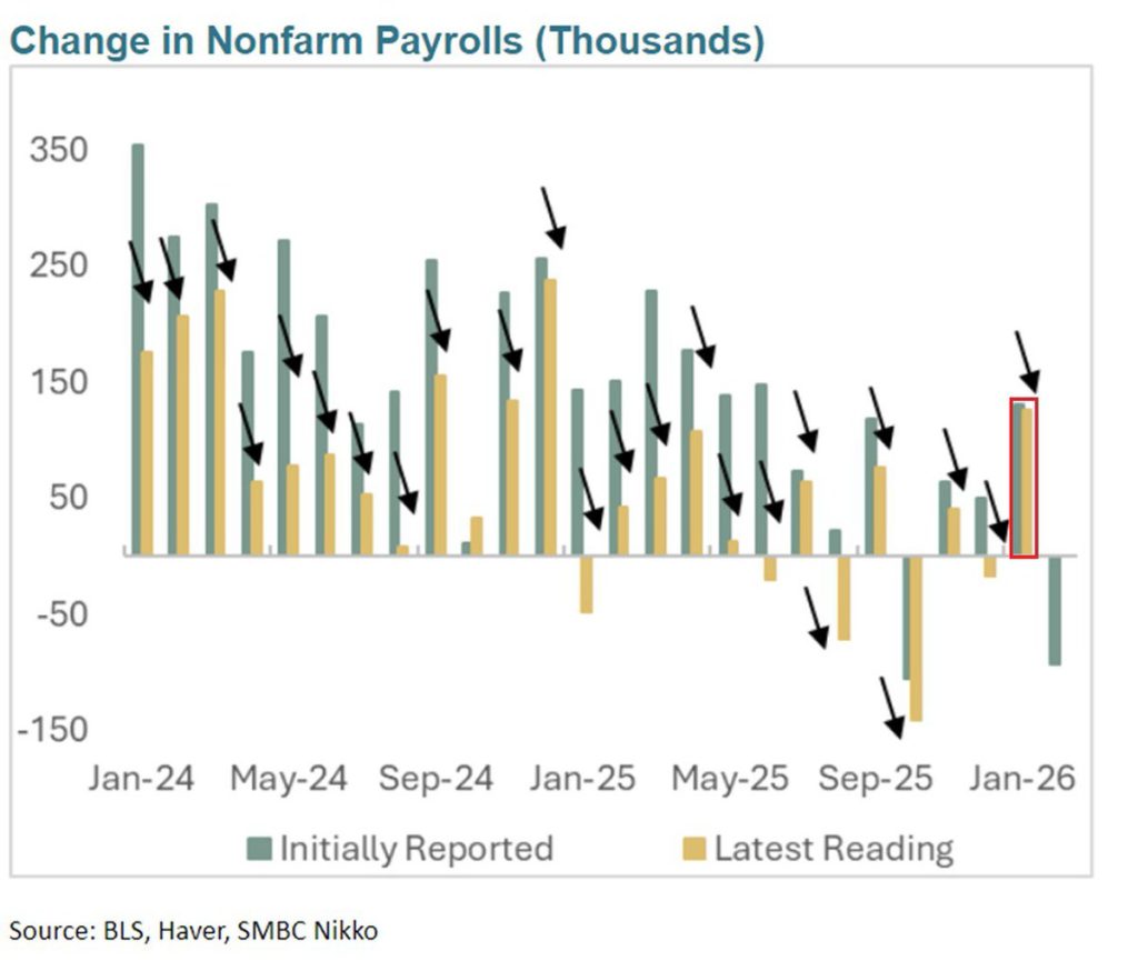 In addition, monthly updates also shifted the labor picture. December payrolls were initially reported as a gain of 48,000 jobs. But this was later revised to show a 17,000 decline. These adjustments are part of the government’s effort to improve labor market data accuracy as more employer reports are incorporated into the dataset. Repeated downward revisions are being viewed by some economists as potential economic slowdown signals.