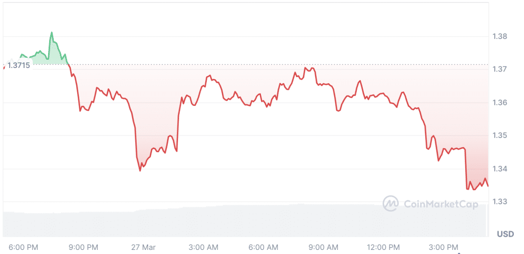At press time, XRP was trading at a low of $1.33. This comes after a 30-day drop of 3.37%. Over the past 24 hours alone, the altcoin has dipped by 2.75%.