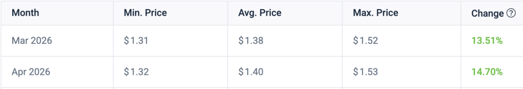 But this downtrend could see a shift during the next month. Data from Coincodex reveals a positive uptick for XRP in the month of April. According to Coincodex’s XRP price prediction for April 2026, the asset is expected to trade between $1.30 and $1.53. While this indicates limited volatility, strong catalysts could trigger an uptrend.