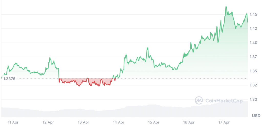 At press time, XRP was trading at $1.43 following a 1.66% increase in price over the past 24 hours. The altcoin enjoyed a fairly good week following a 7.36% rise.